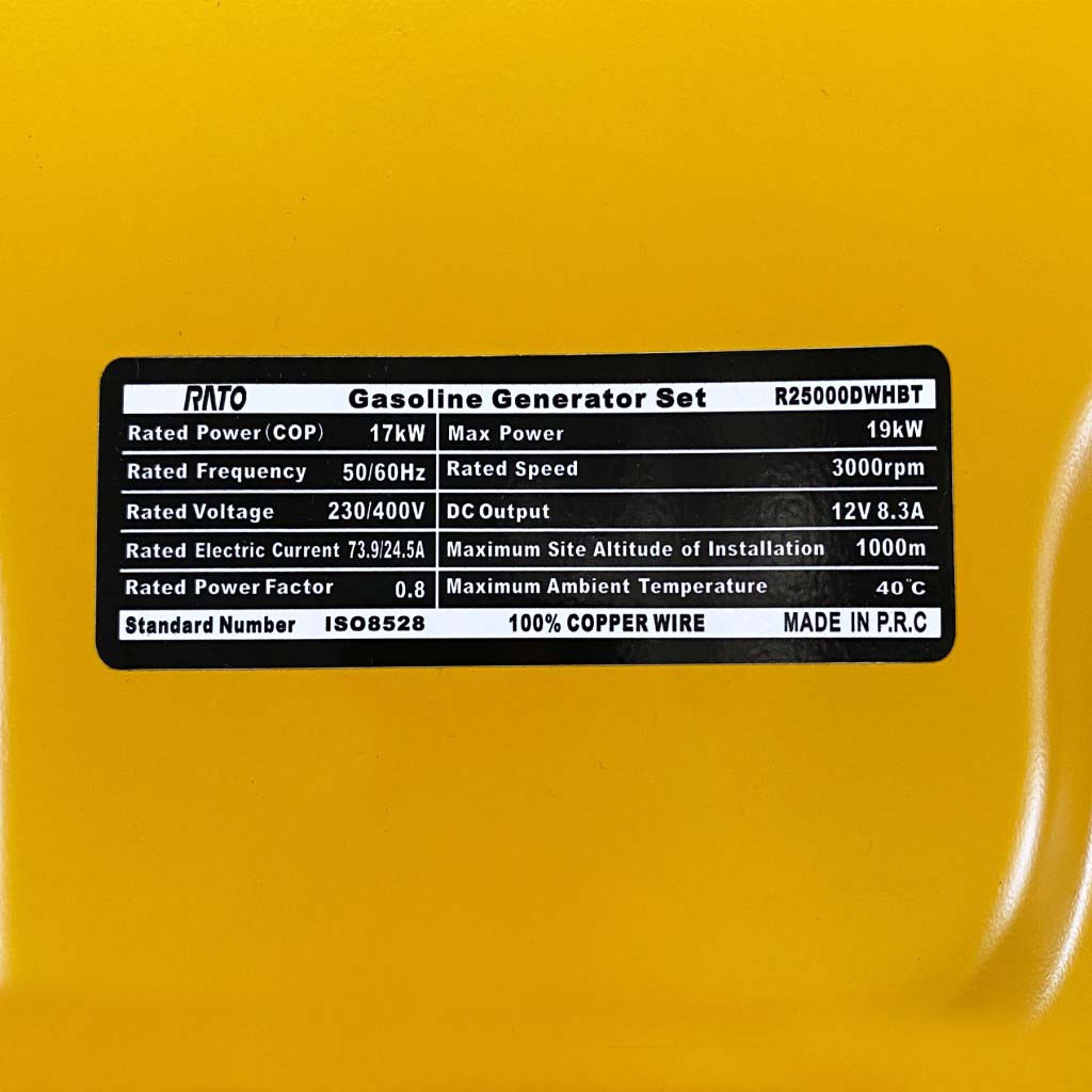مشخصات فنی موتور برق بنزینی راتو 19 کیلووات مدل RATO R25000DWHBT (تکفاز و سه فاز)